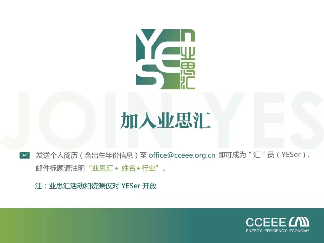 無(wú)論從國(guó)際、國(guó)內(nèi)還是人才自身的角度,國(guó)際化能效人才培養(yǎng)都至關(guān)重要,而“業(yè)思匯”就在這樣一個(gè)背景下應(yīng)運(yùn)而生。CCEEE執(zhí)行主任桑晶對(duì)“業(yè)思匯”的起源、目標(biāo)、定位、內(nèi)涵、活動(dòng)計(jì)劃等進(jìn)行了系統(tǒng)的介紹,還邀請(qǐng)?jiān)趫?chǎng)“匯”員們對(duì)“業(yè)思匯”今后的活動(dòng)和發(fā)展暢所欲言。EMCA趙明副主任、國(guó)家節(jié)能中心推廣處辛升處長(zhǎng)和漢能薄膜發(fā)電李巖副總經(jīng)理等“匯”員在這一環(huán)節(jié)積極發(fā)言,提出了希望“業(yè)思匯”能夠?qū)⒛苄瞬艌F(tuán)結(jié)起來(lái)做一些實(shí)事,聯(lián)合各界力量一起將能效領(lǐng)域的研究成果轉(zhuǎn)化為經(jīng)濟(jì)價(jià)值和社會(huì)價(jià)值等重要發(fā)展建議。